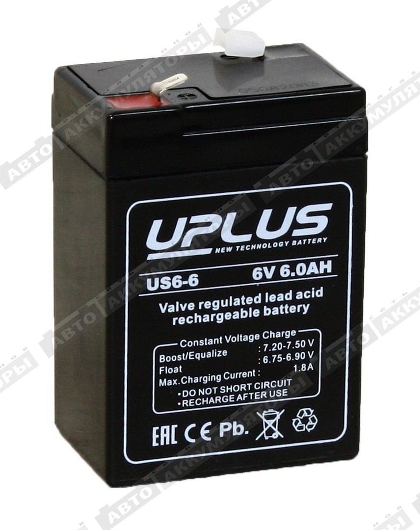 Аккумулятор Uplus US6-6.0 6В 6Ач для детского электромобиля, для детского мотоцикла, для источника бесперебойного питания (для ИБП 6В), для фонарей, для охранных систем, для эхолотов.